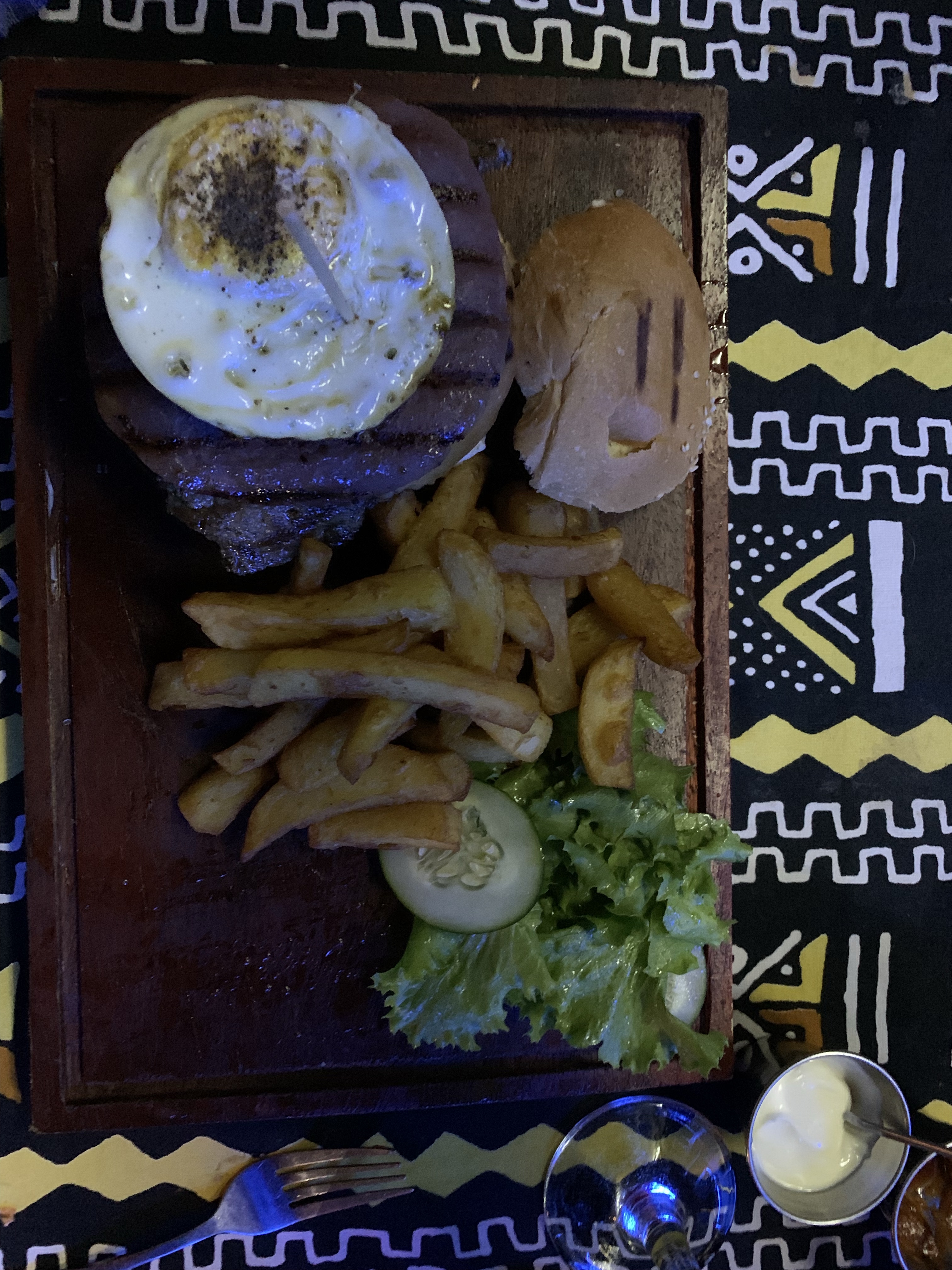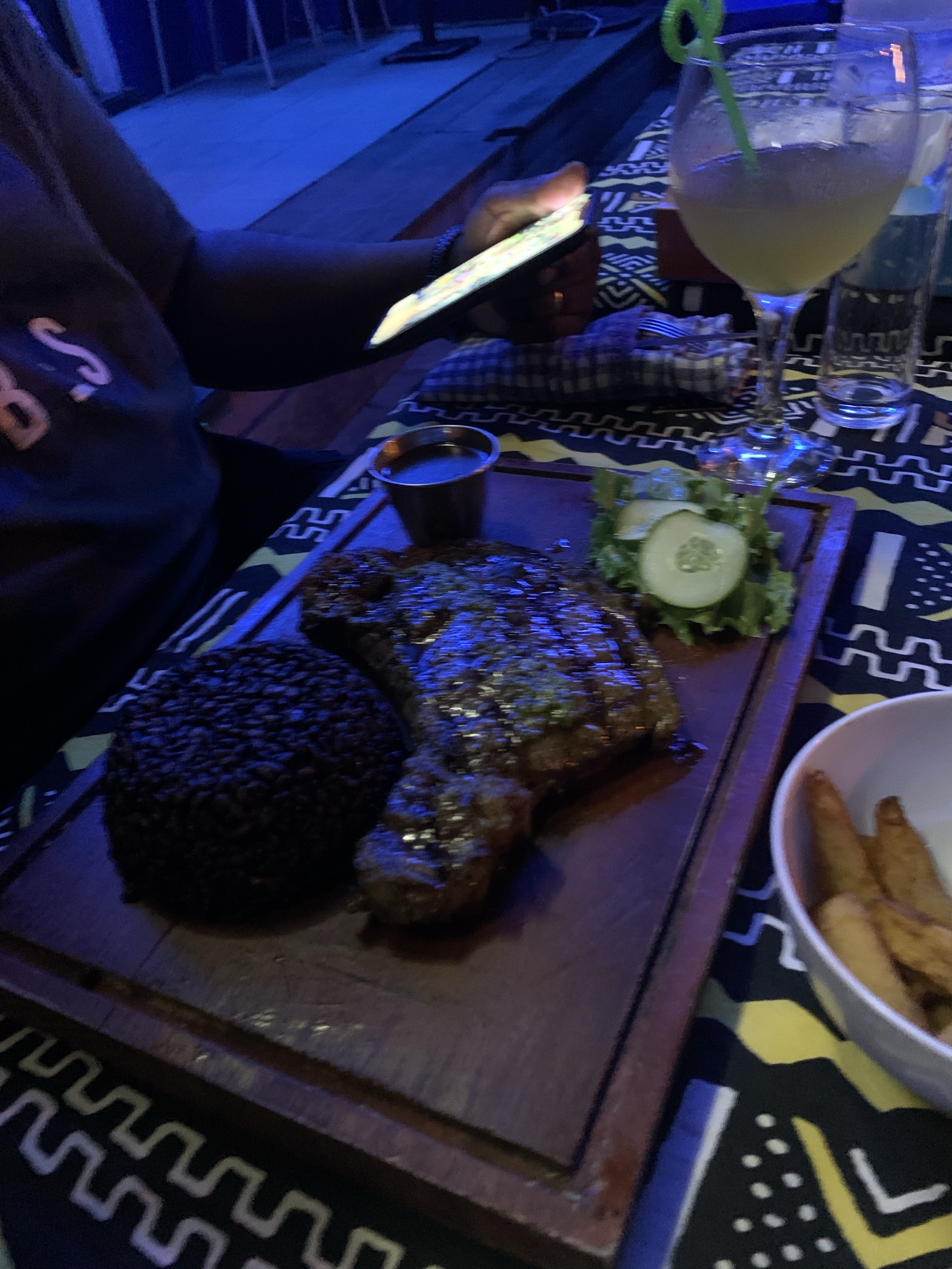 My food was (you guessed it) Seafood. 😍🤤 There is something about the mix/usage of spices there…hard to explain but, the word Amazing will be used alot in my posts. Since I ate earlier the drink and appetizer shrimp…or “Lambas” was all I had. Alain had the Steak and Tawanna the burger. Ever have food so good that no one talks and all you hear are the sounds of food being devoured? Yup…our food was 10/10. Another #FMFRecommendation.