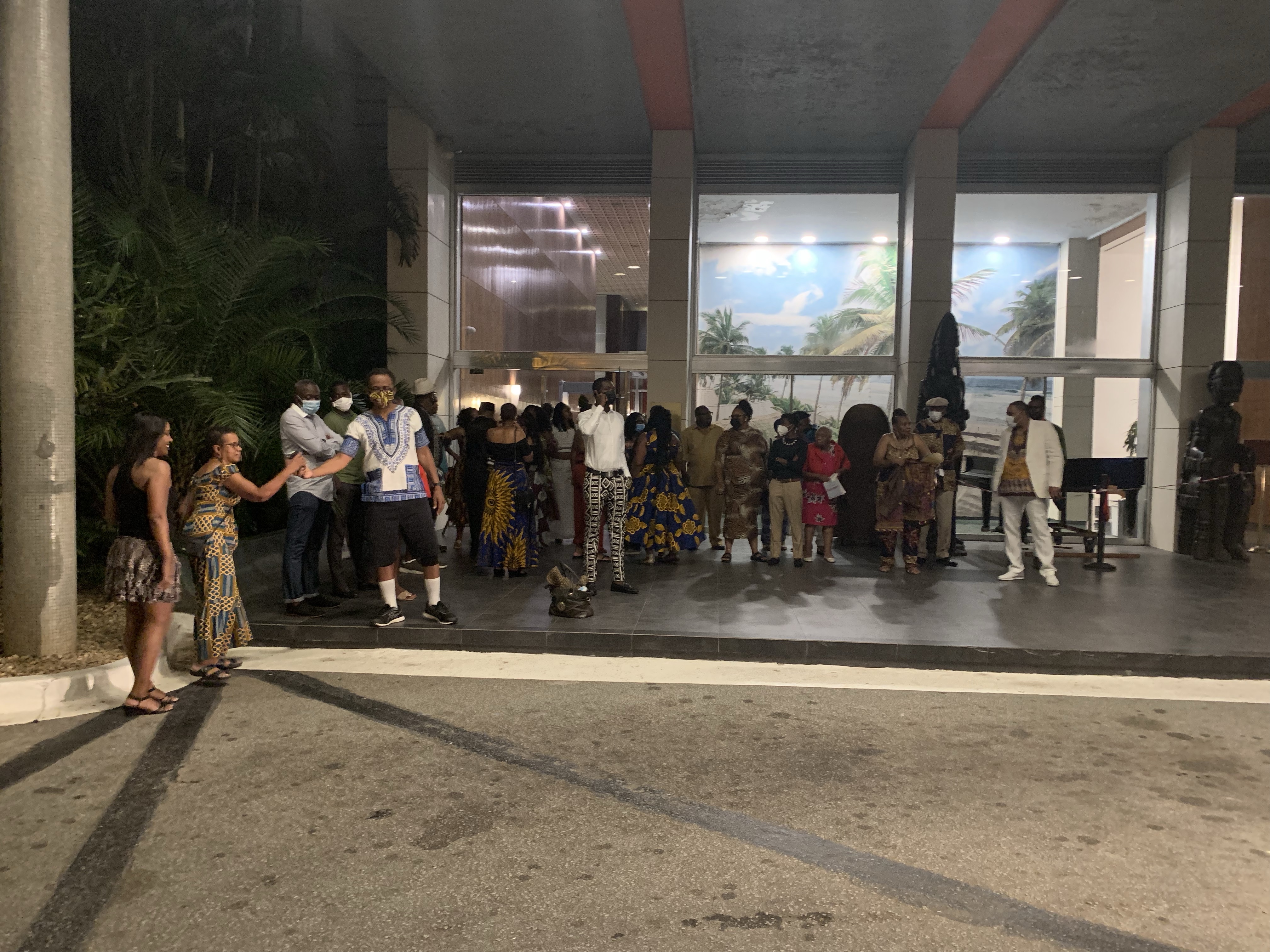 We left the museum, headed back to the beach and enjoyed the pool, sunset and some late afternoon snacks. Soon, it would be time to return home…punctuated by a group karaoke session led by “The Captain” Keito. Our bus ride to and fro was lit thx to Capt…more on him in a future post. The NEXT post, however, will be about the final wedding In Abidjan. More to come…