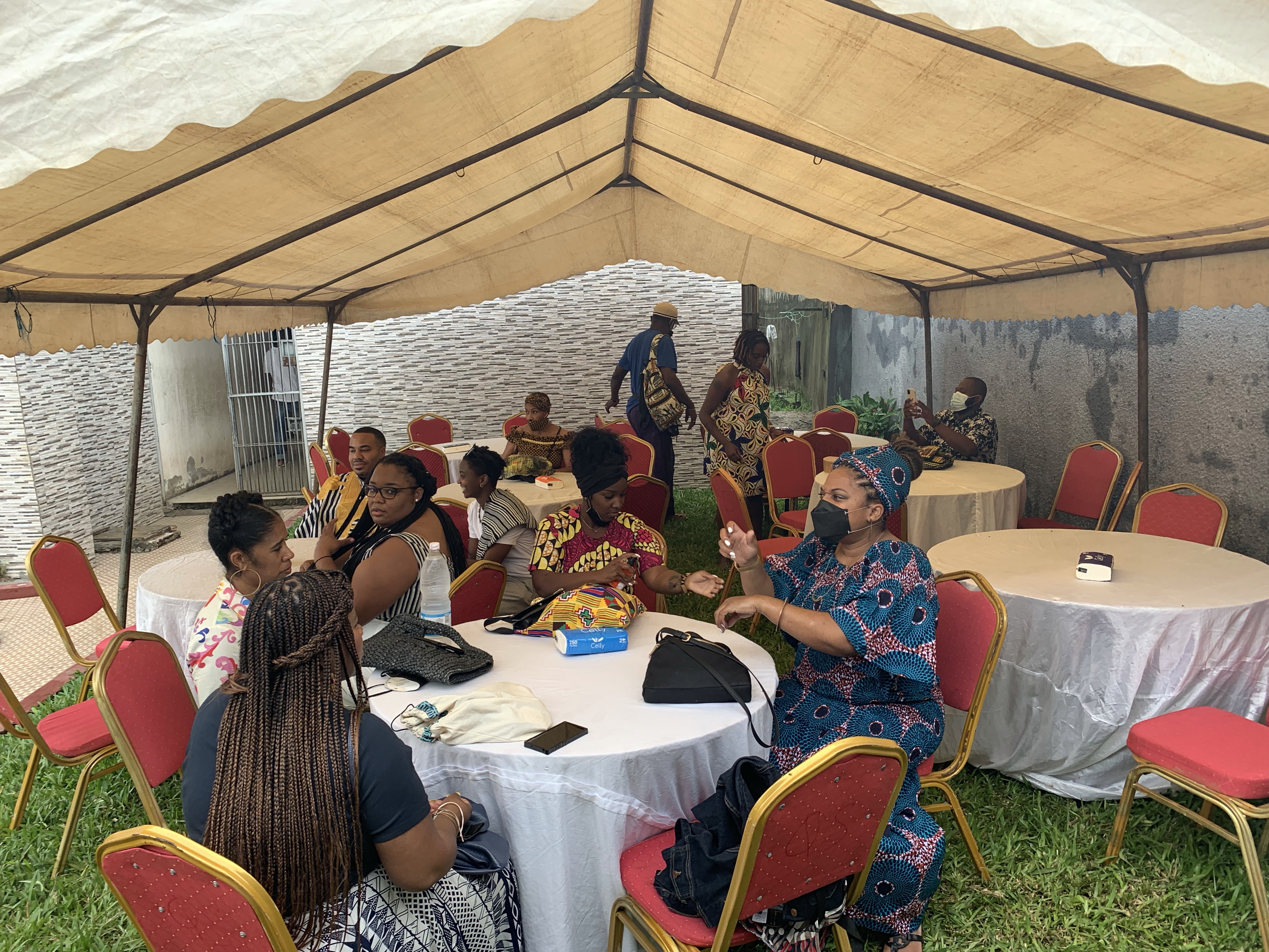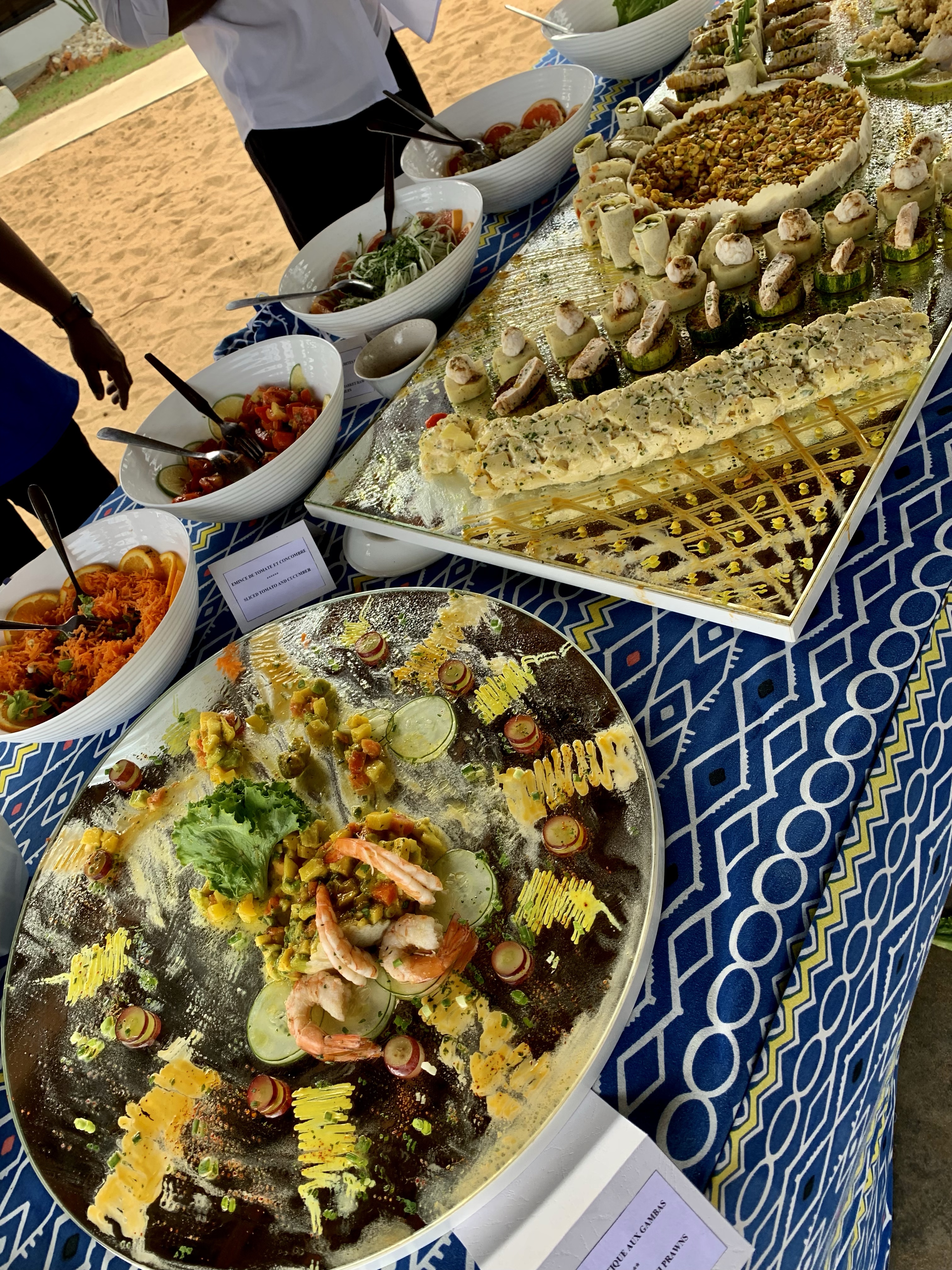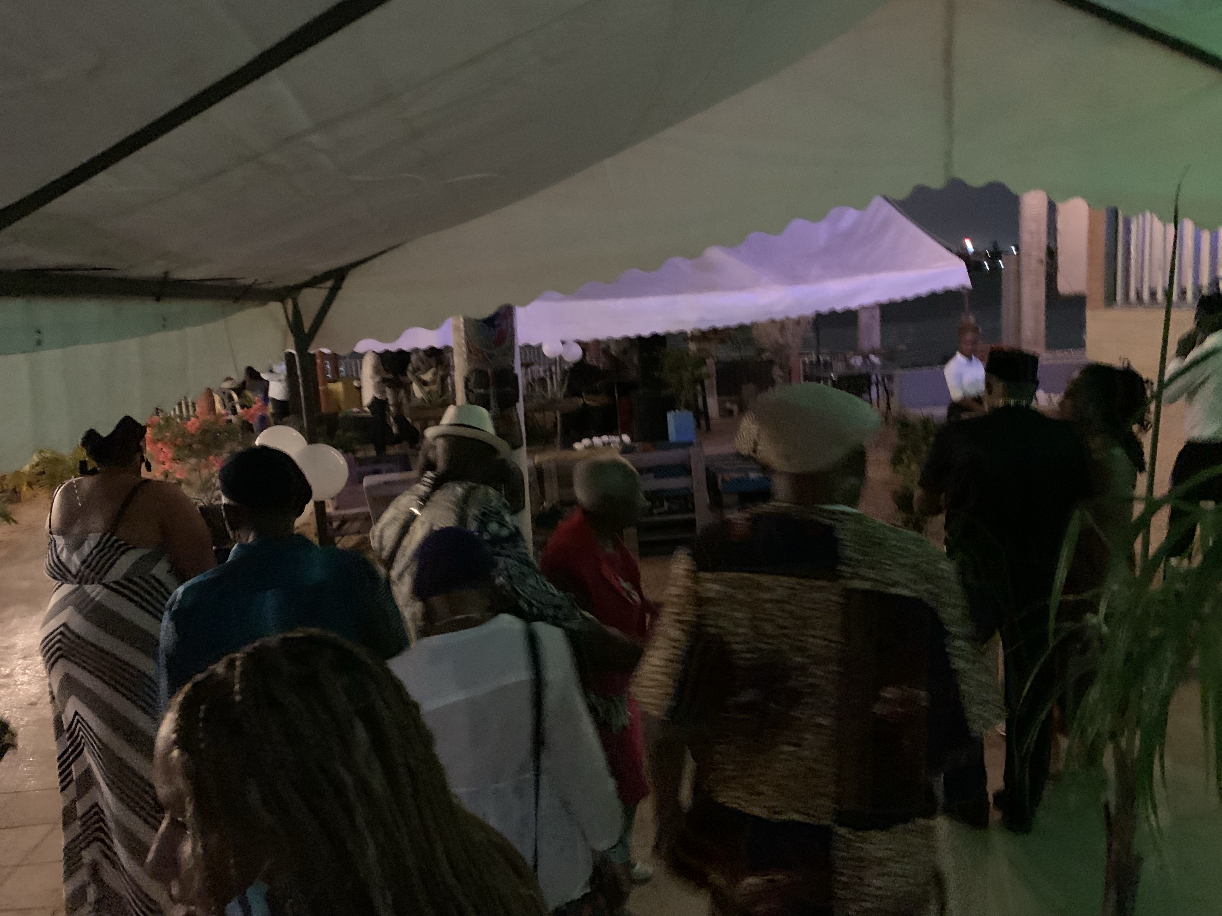 Family and friends of the groom had been consistently trickling in. It was now 1pm. As more people began to arrive, one of the multiple MC’s for the evening, used his Mic to began salutations for both families. He spoke in both English, French and the local language. He introduced the families, thanked us for being there, told a few jokes and generally kept the crowd entertained while the music played.