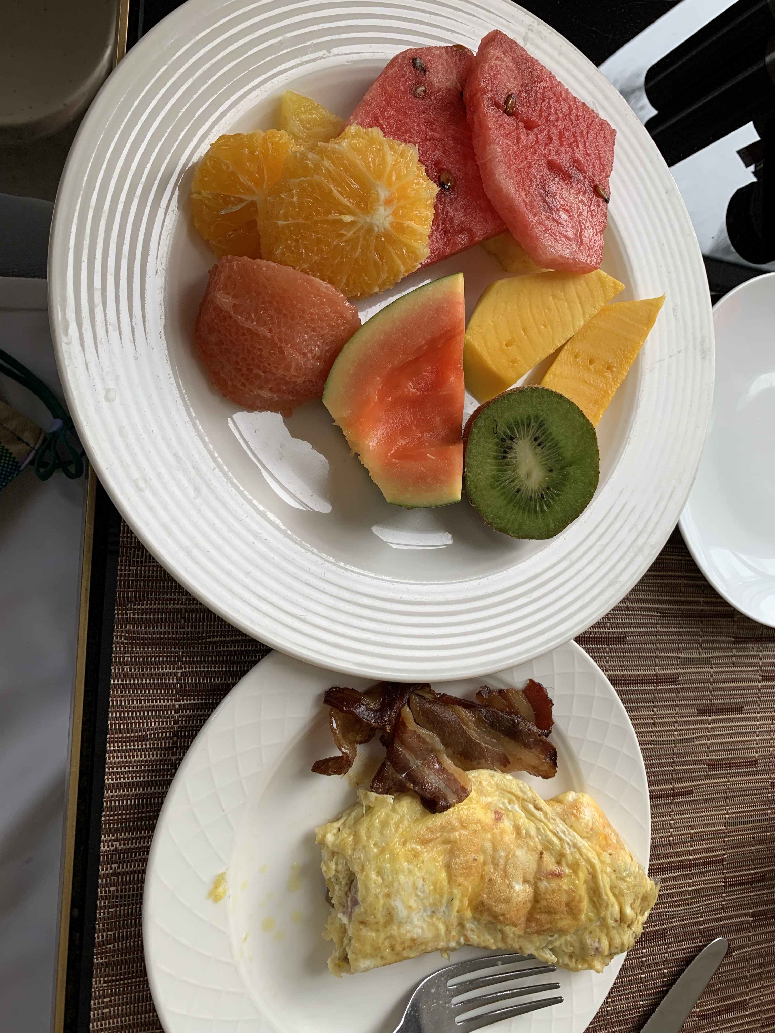 Like most higher end hotels, the Breakfast at Sofitel was a mix of self serve, buffet style, covered containers. The offerings contained a multitude of hot and cold foods, veggies, fruits and juices. There were also Bread and Omelet stations of which I took full advantage of. The “Omelet Lady” and I knew each other well by the time we left. I would walk in, give the familiar black nod, and in minutes she had me good to go. Also of note was the variety of juices available for consumption. In particular, the Ginger juice was my favorite as I am a Ginger Ale/Beer kind of guy. There weren’t too many breakfast pics but here’s a few to give you an idea…Ironically enough, these are from our first and last day at the hotel. Had I thought about it, I would have taken more. Oh well. 🤷🏾