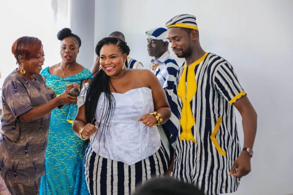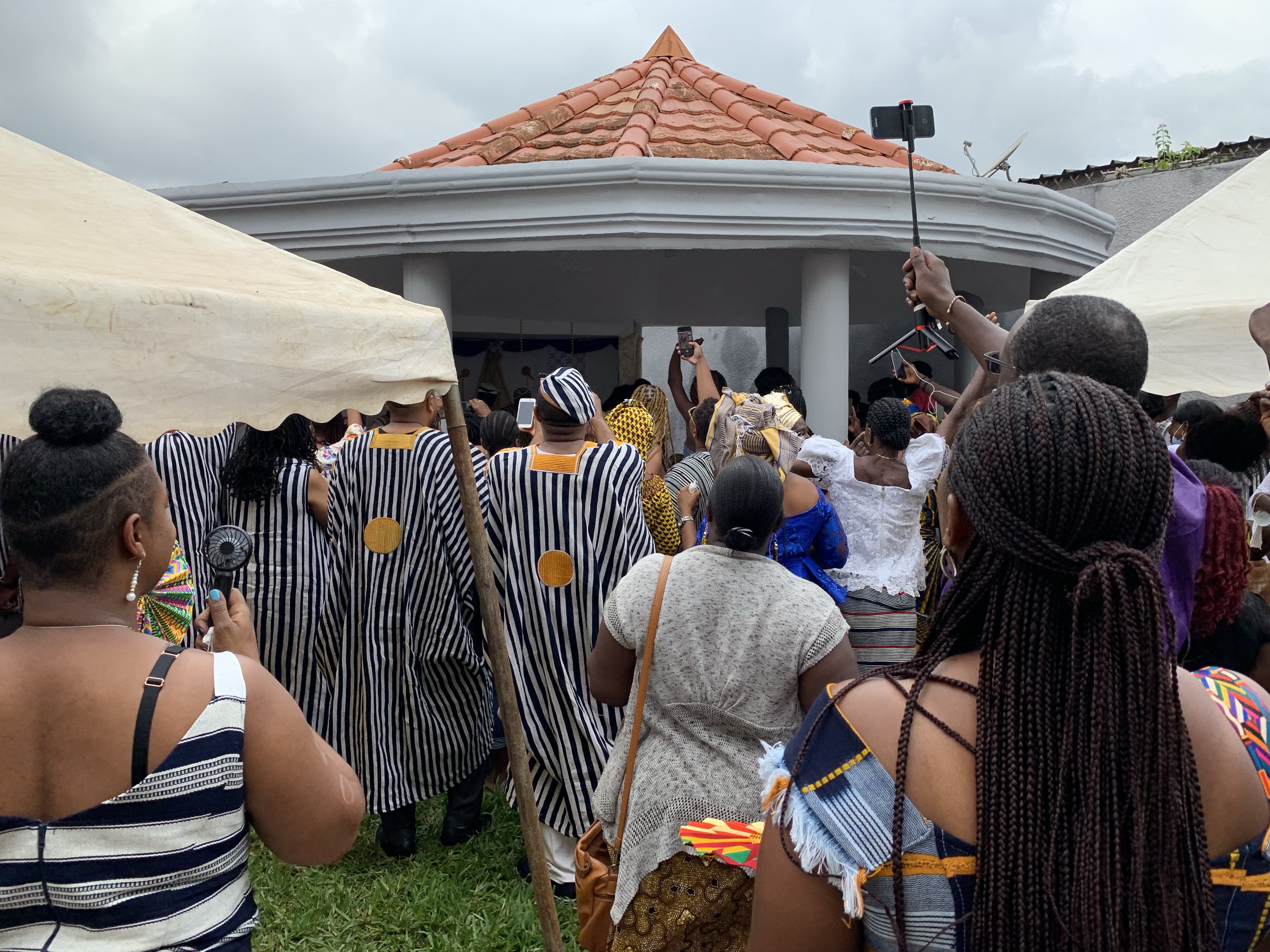 At 1:39PM, the time we were waiting for had finally arrived. My songstress/comedian/MC/host made the announcement and from the front of the house, Mr. & Mrs Douo made their way with a crowd of well wishers, from the front of the house to the back where the special area for the bride and broom awaited. The King and Queen have Arrived!! There were tears, there were cheers, there was dancing…it was awesome.