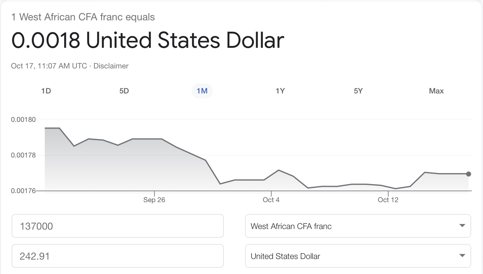 We sat, ate, reminisced and discussed Africa and her future. One of the more interesting aspects of the conversation centered around the currency (CFA) used in all of the African countries which were colonized by the French. This deserves its own post and I will do so soon.