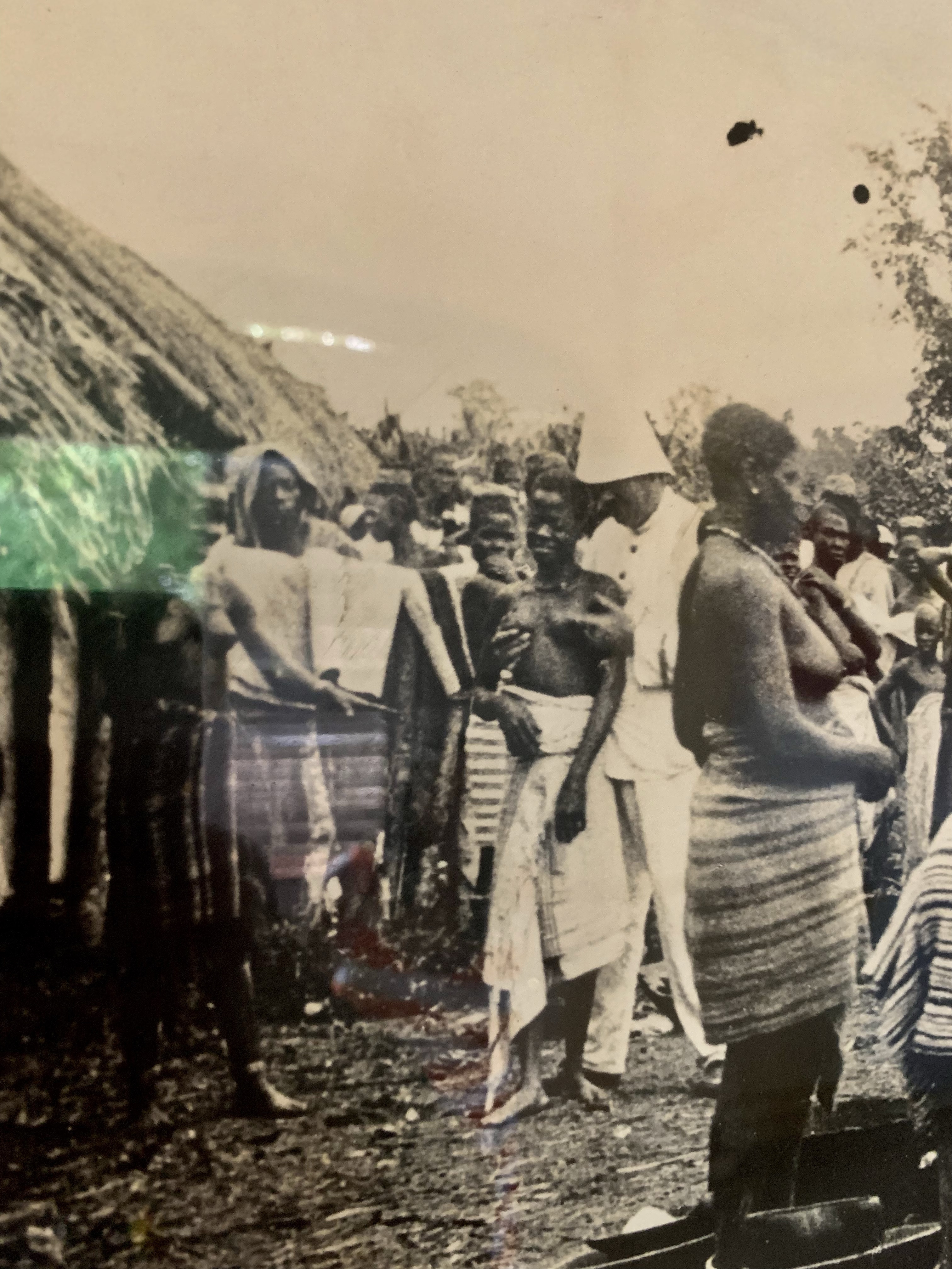 Soon enough, she broke into a song which precipitated the families of the bride and groom taking their seats. Each member of the American family was lead to their seats by the young women of the Duo family. Might I add, they (The American and Duo women) were decorated in ornate circular paintings on their face and arms. I wish I would have taken more pics but, if you look, you will see white paint on the arms and faces of some of the women. Also of note, as you look at some of the pics below, you will also see the women and men wearing outfits from a traditional African garb. Look for the striped fits. I covered this in a previous post but the term for the garb is called ****** When my wife came out, all decked out and adorned with the same paintings/garb…well, I forgot all about my hunger…